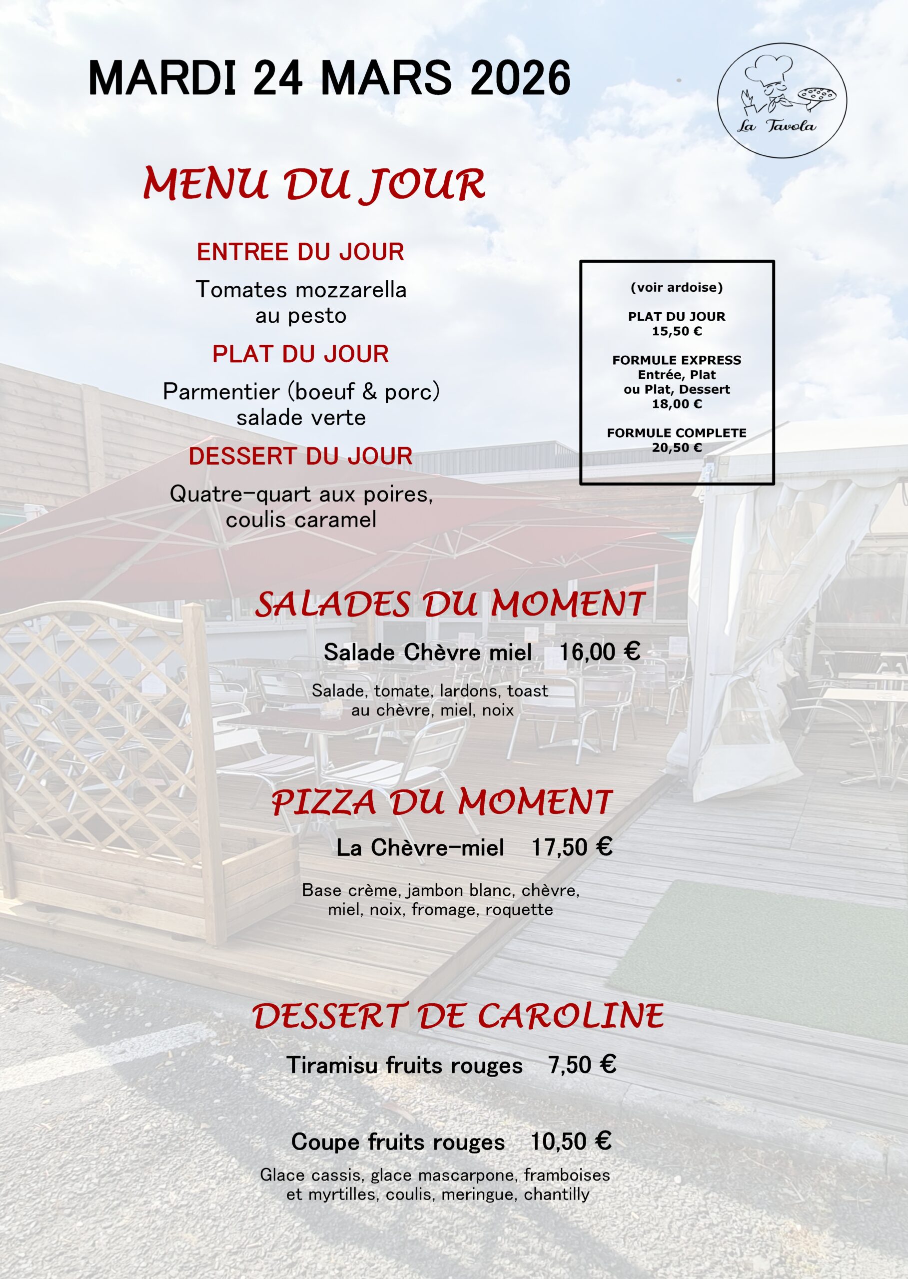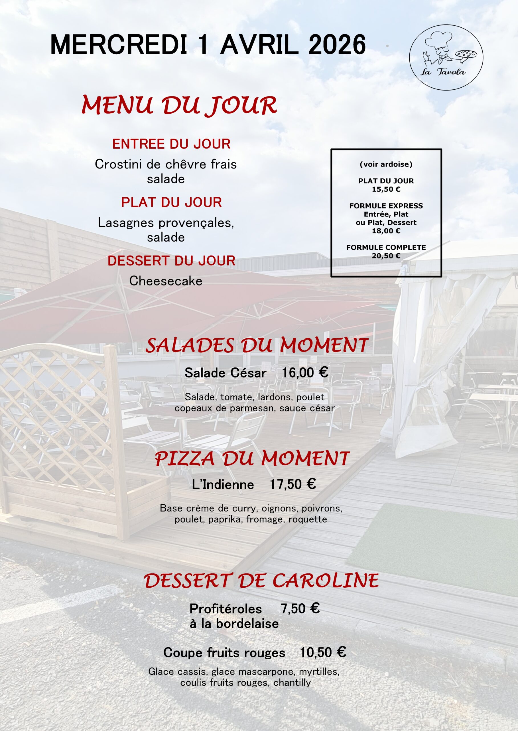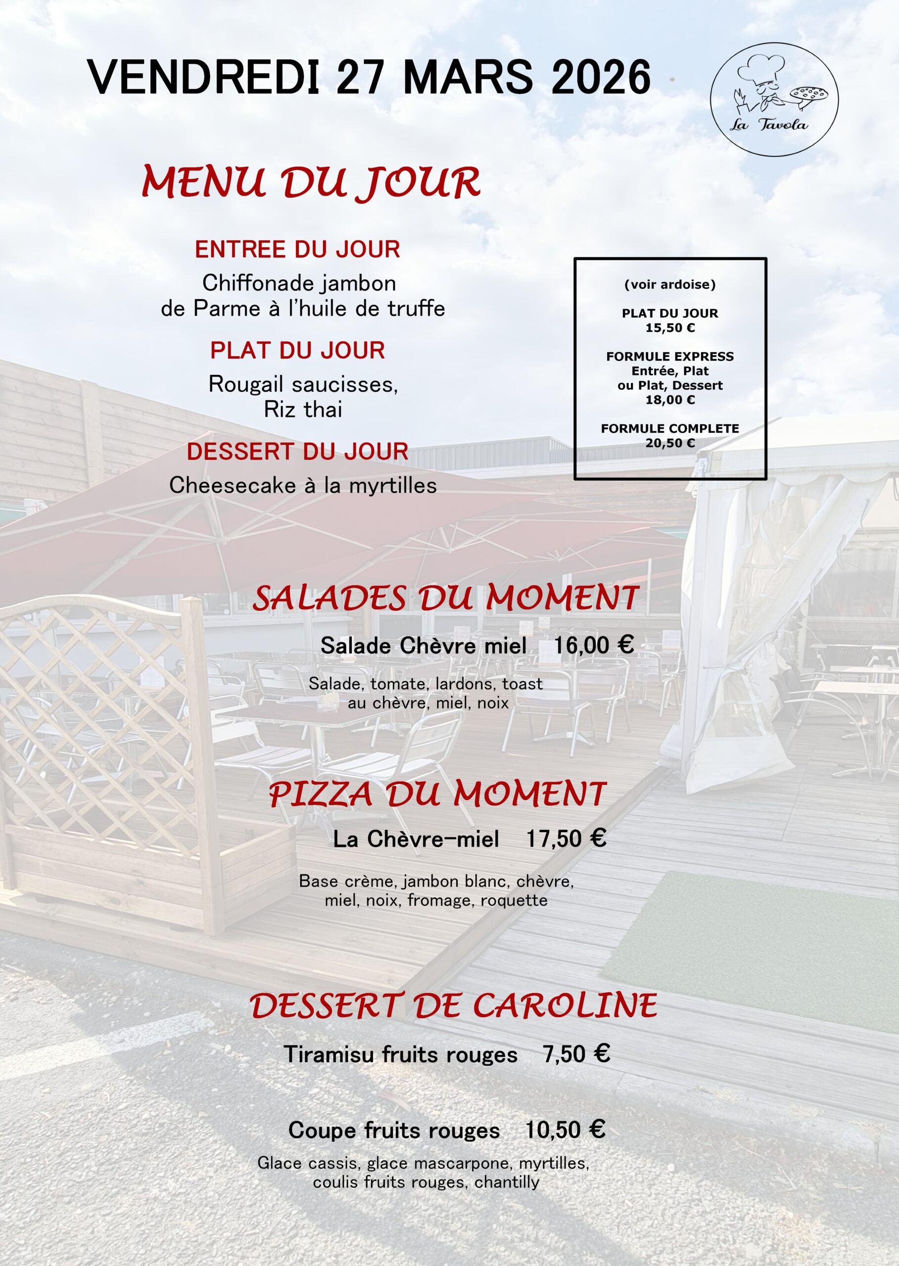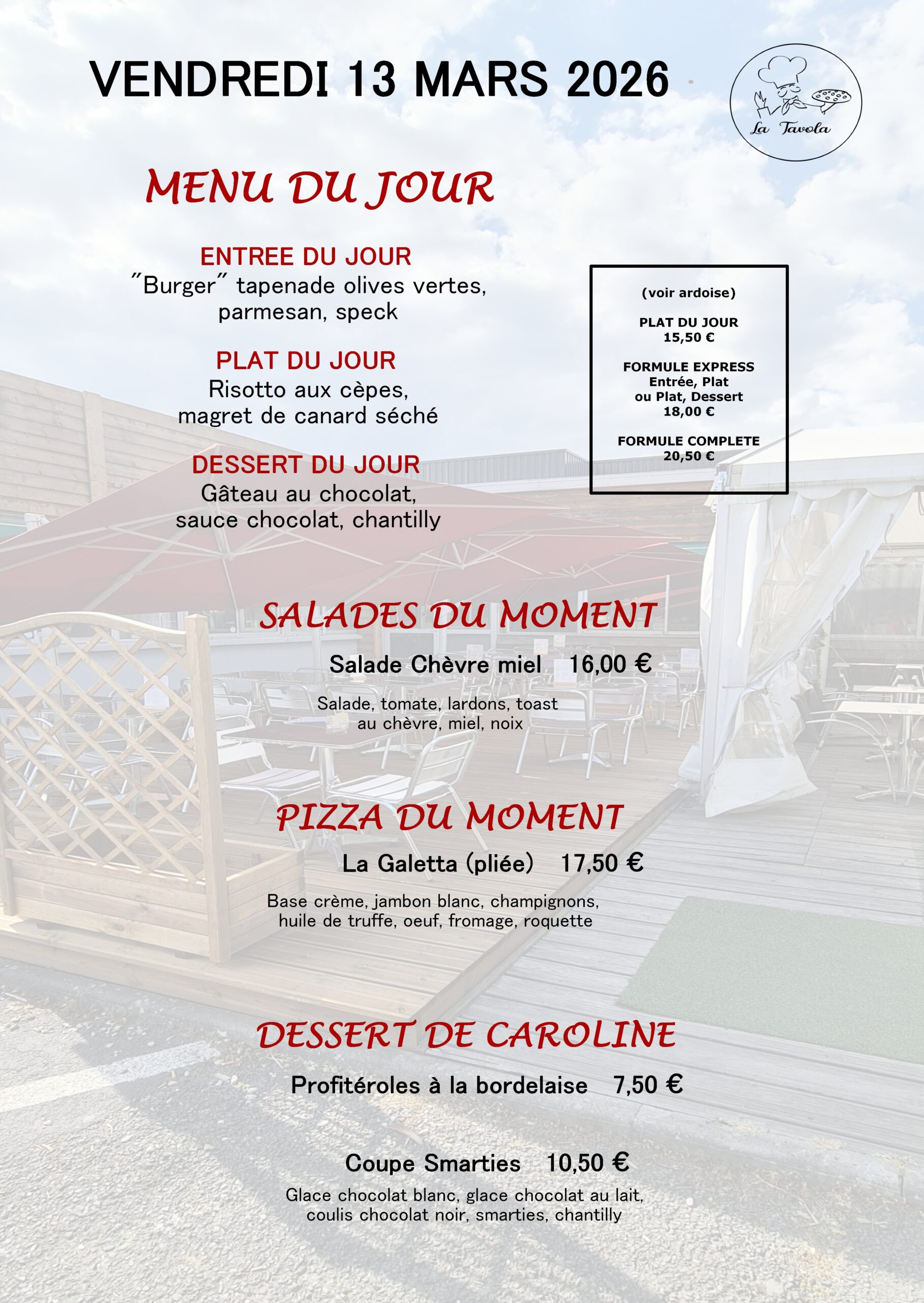 Service du Lundi au Vendredi de 11h45 à 14hOO