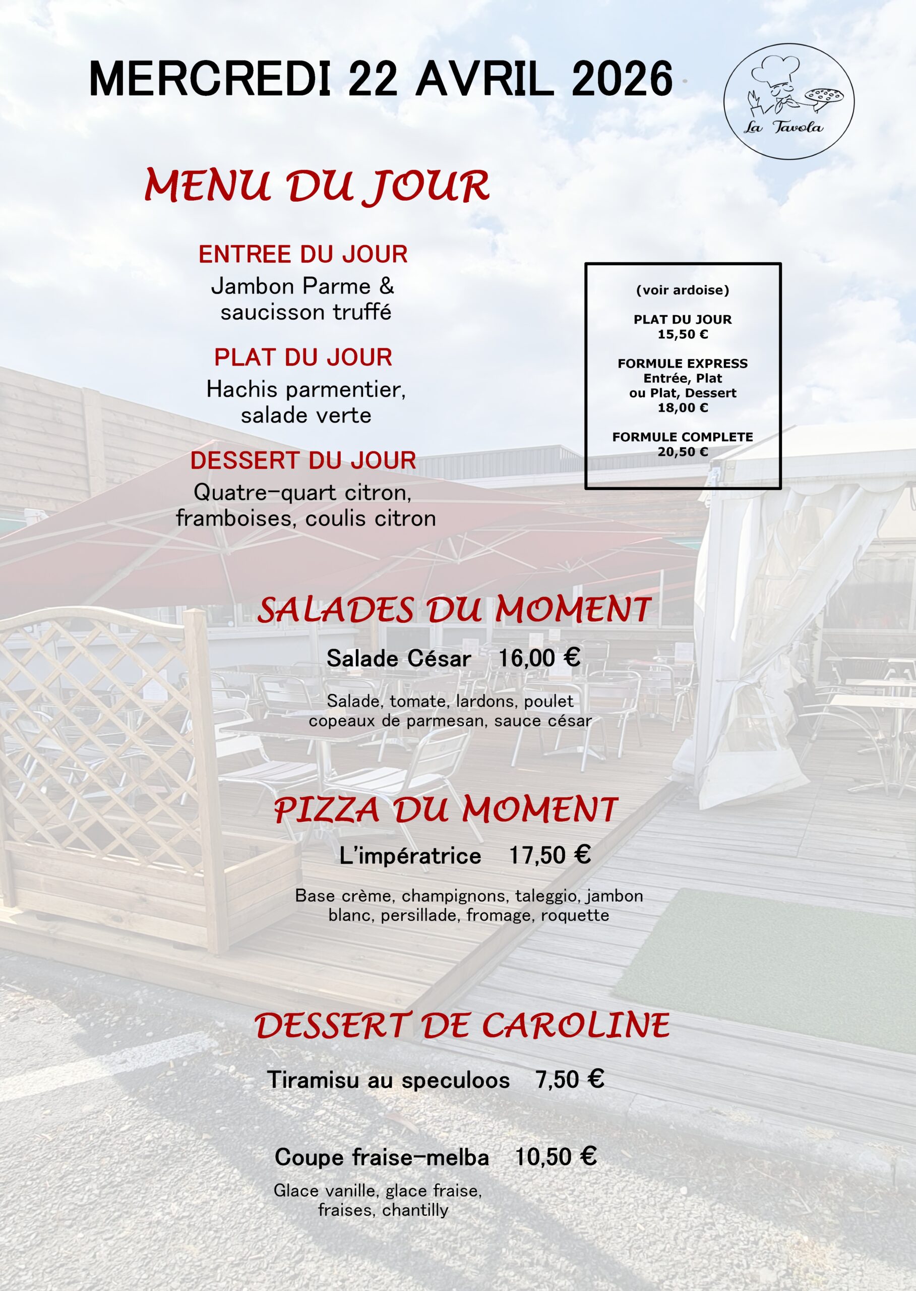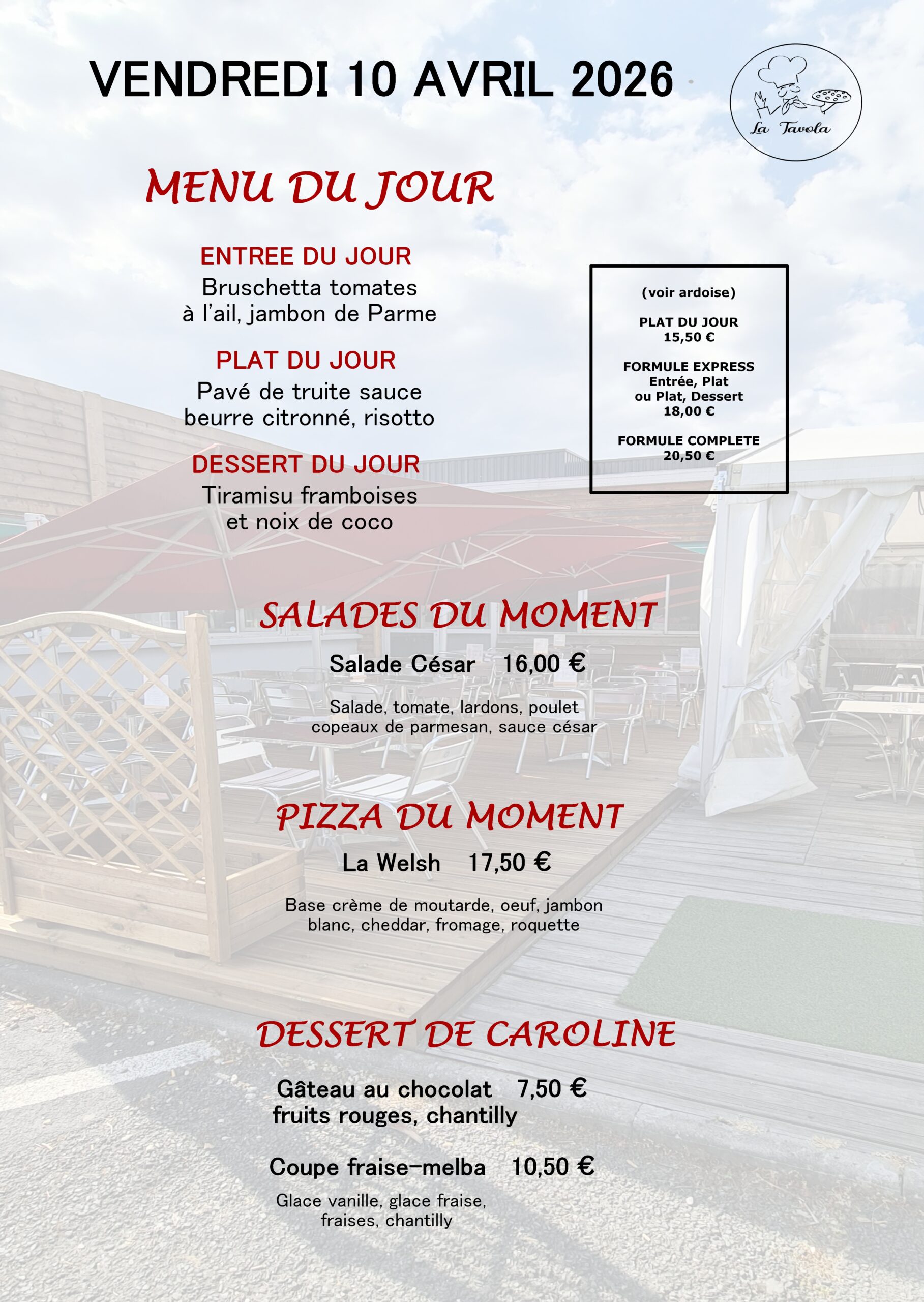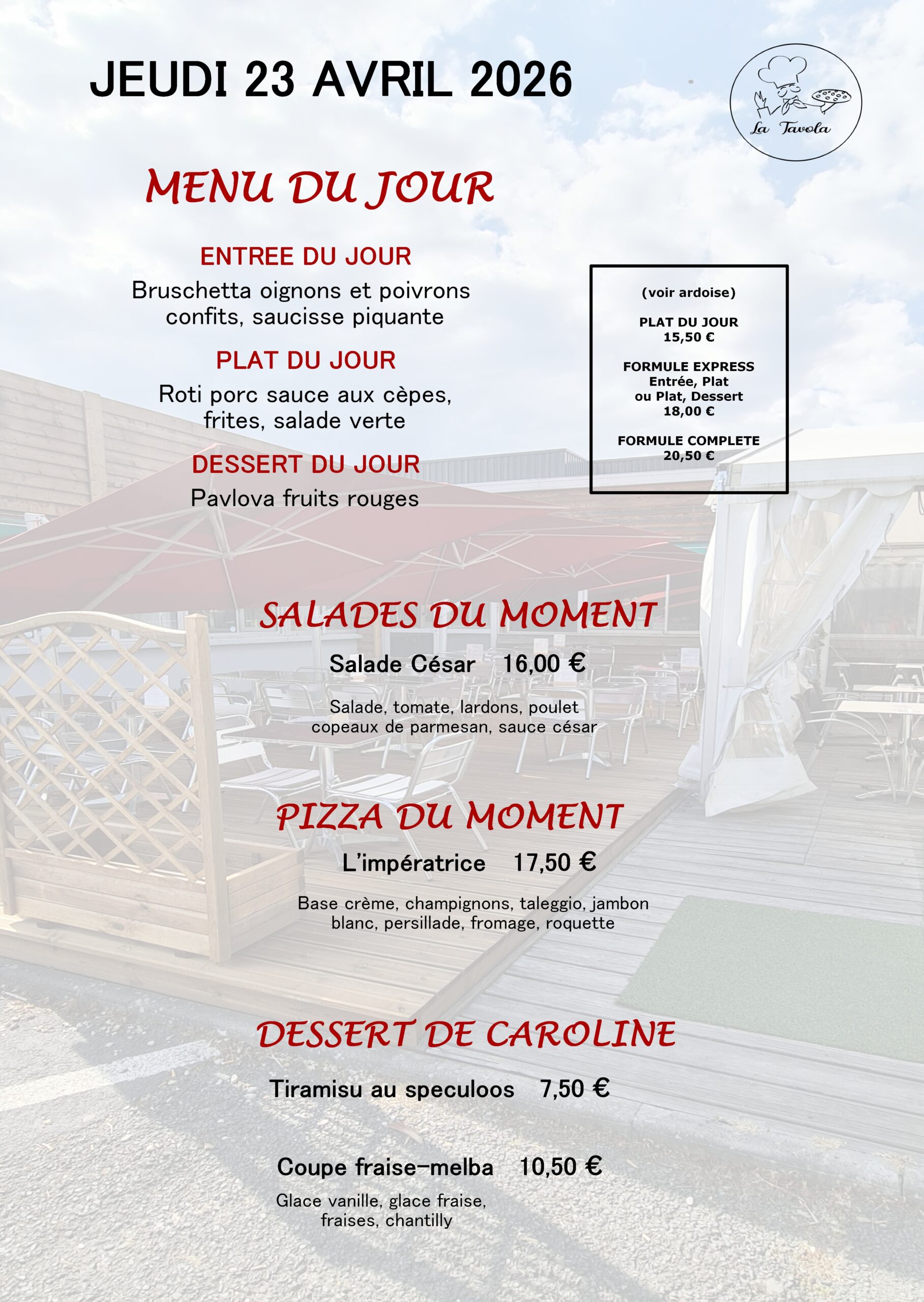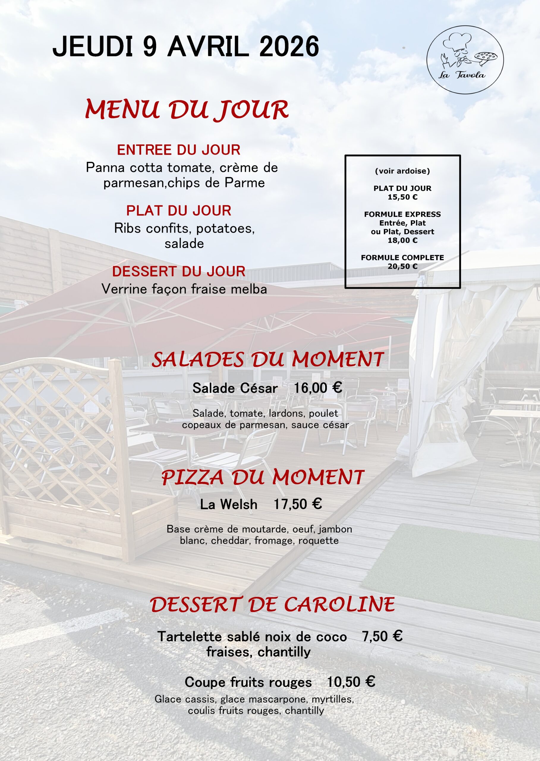 Venez profiter des terrasses du restaurant « la Tavola ».