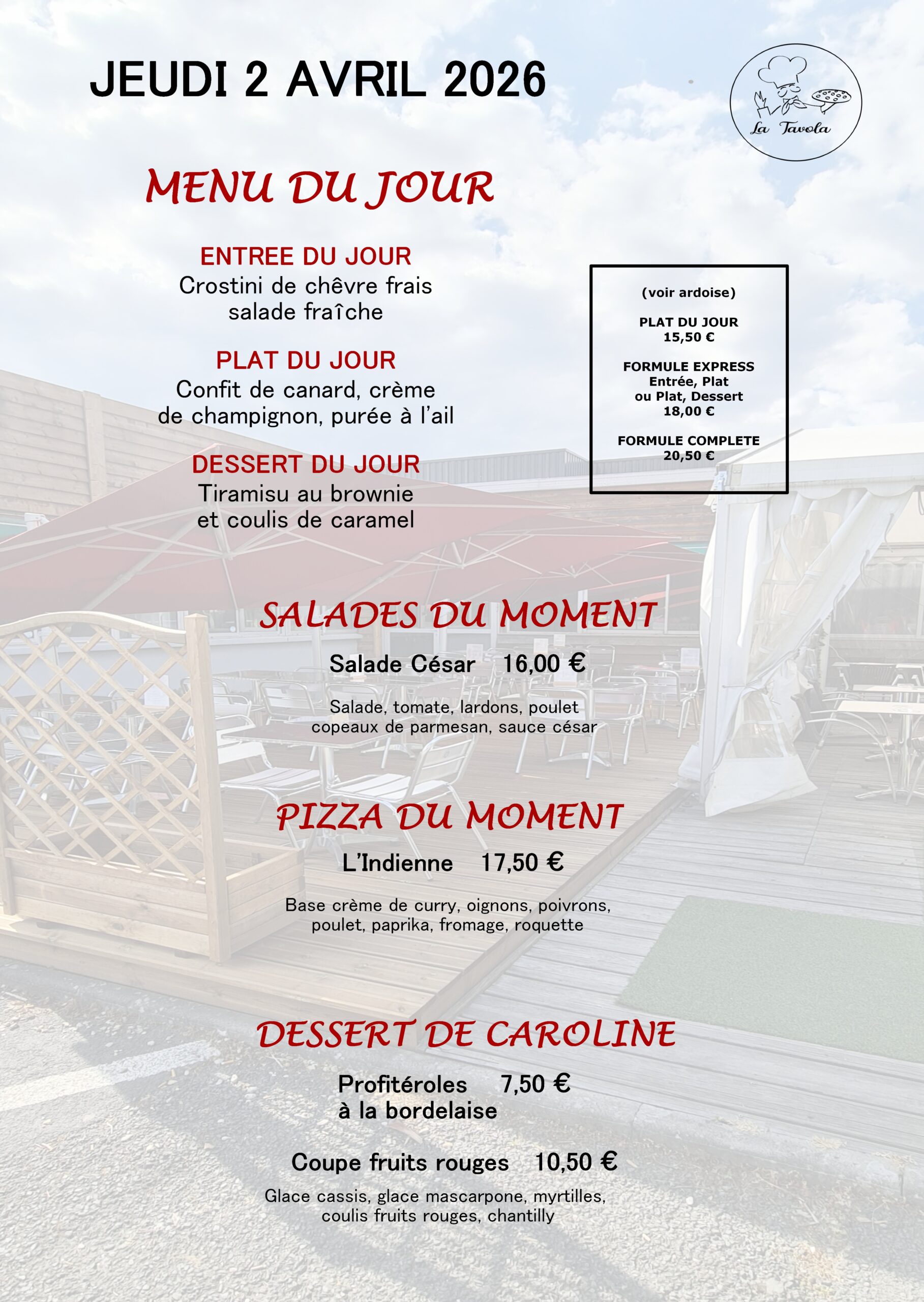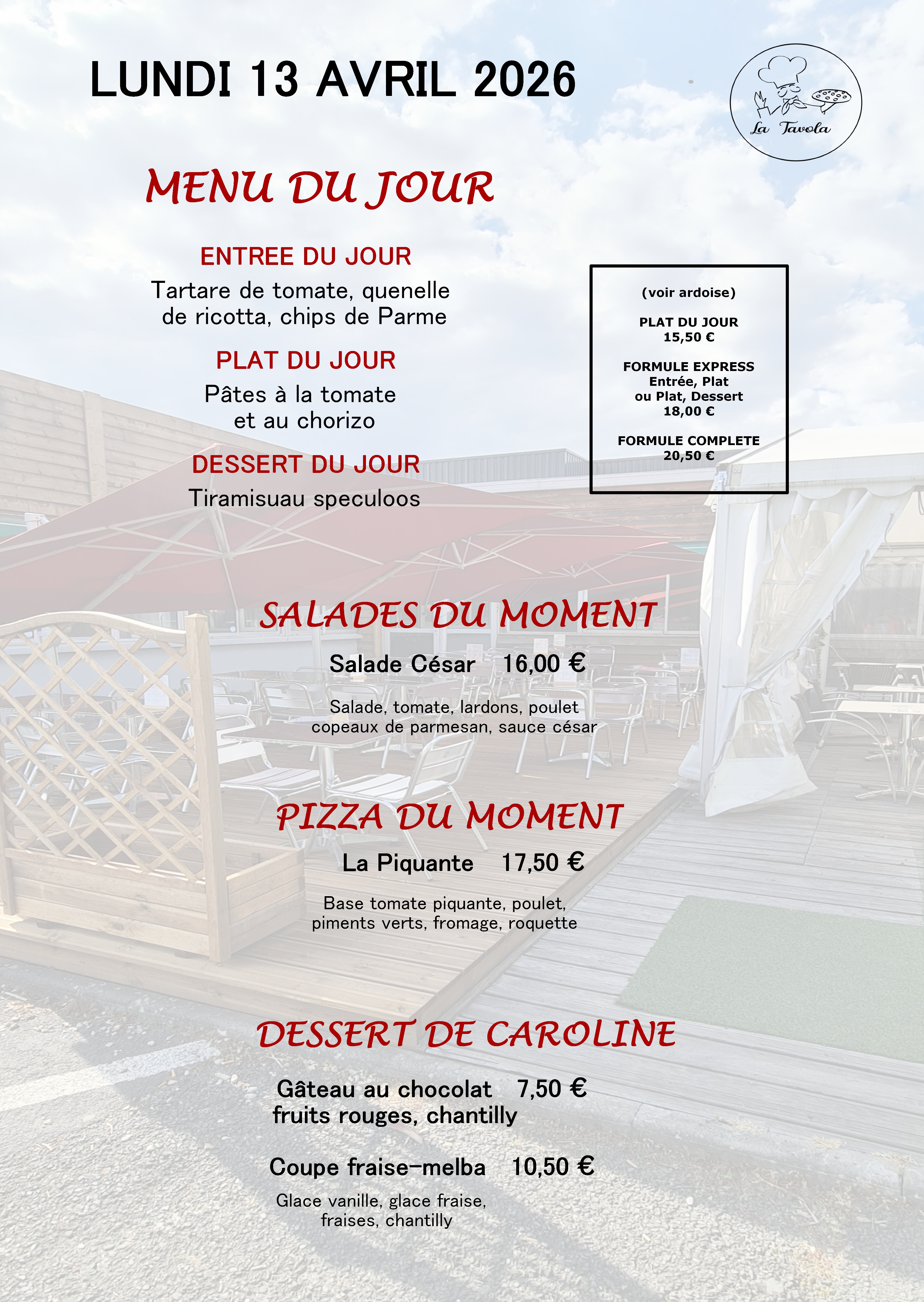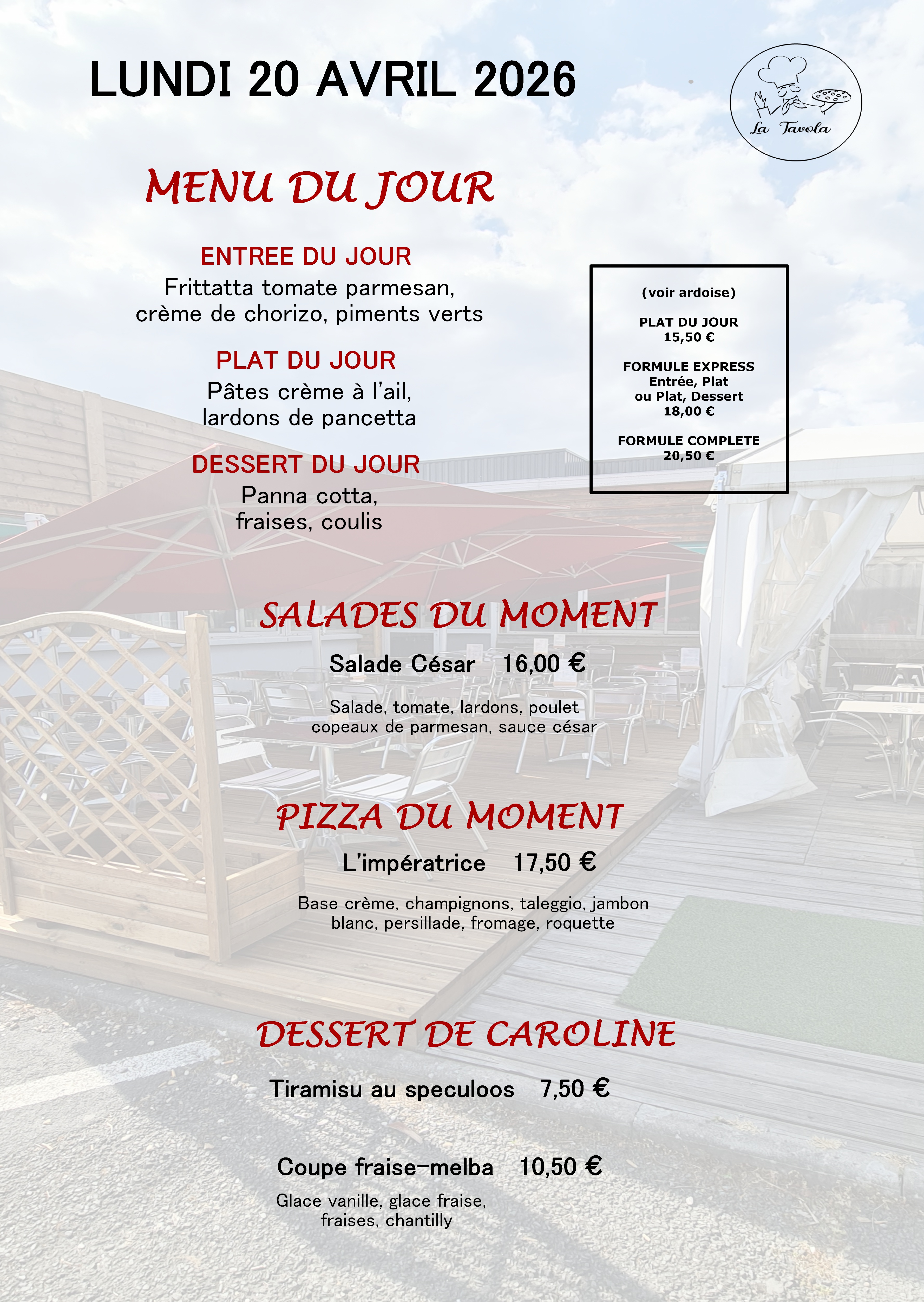 Venez profiter des terrasses du restaurant « la Tavola ».