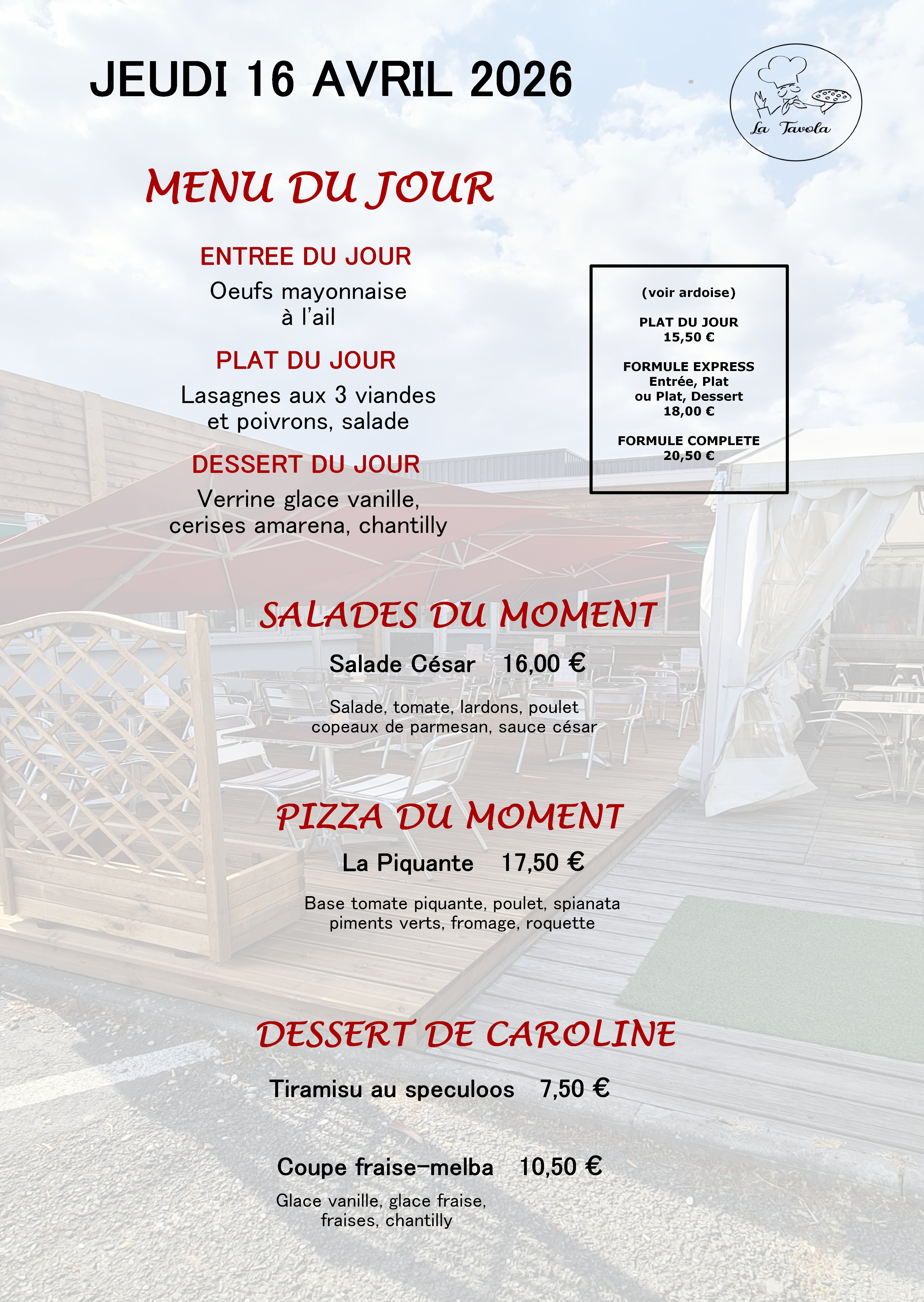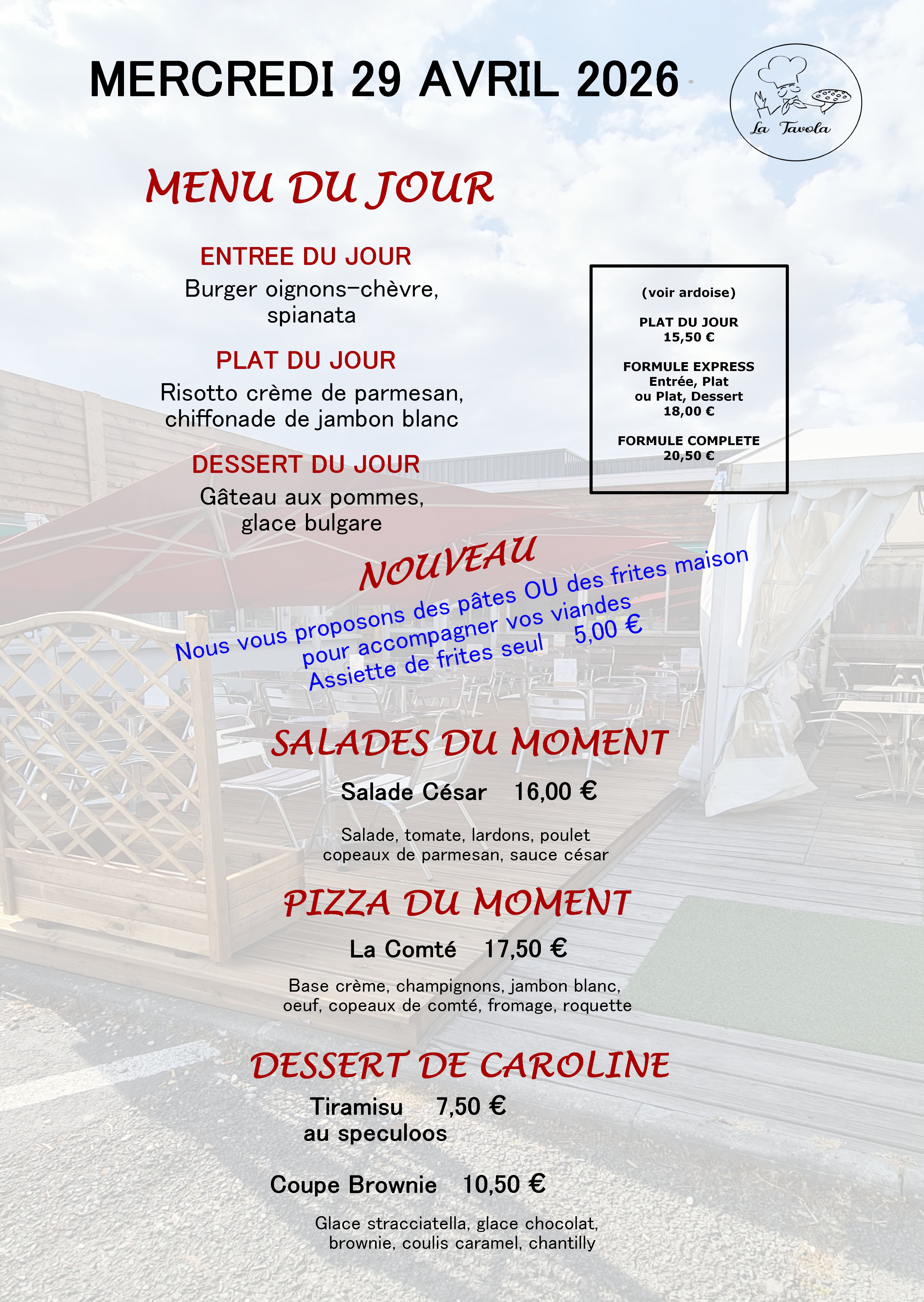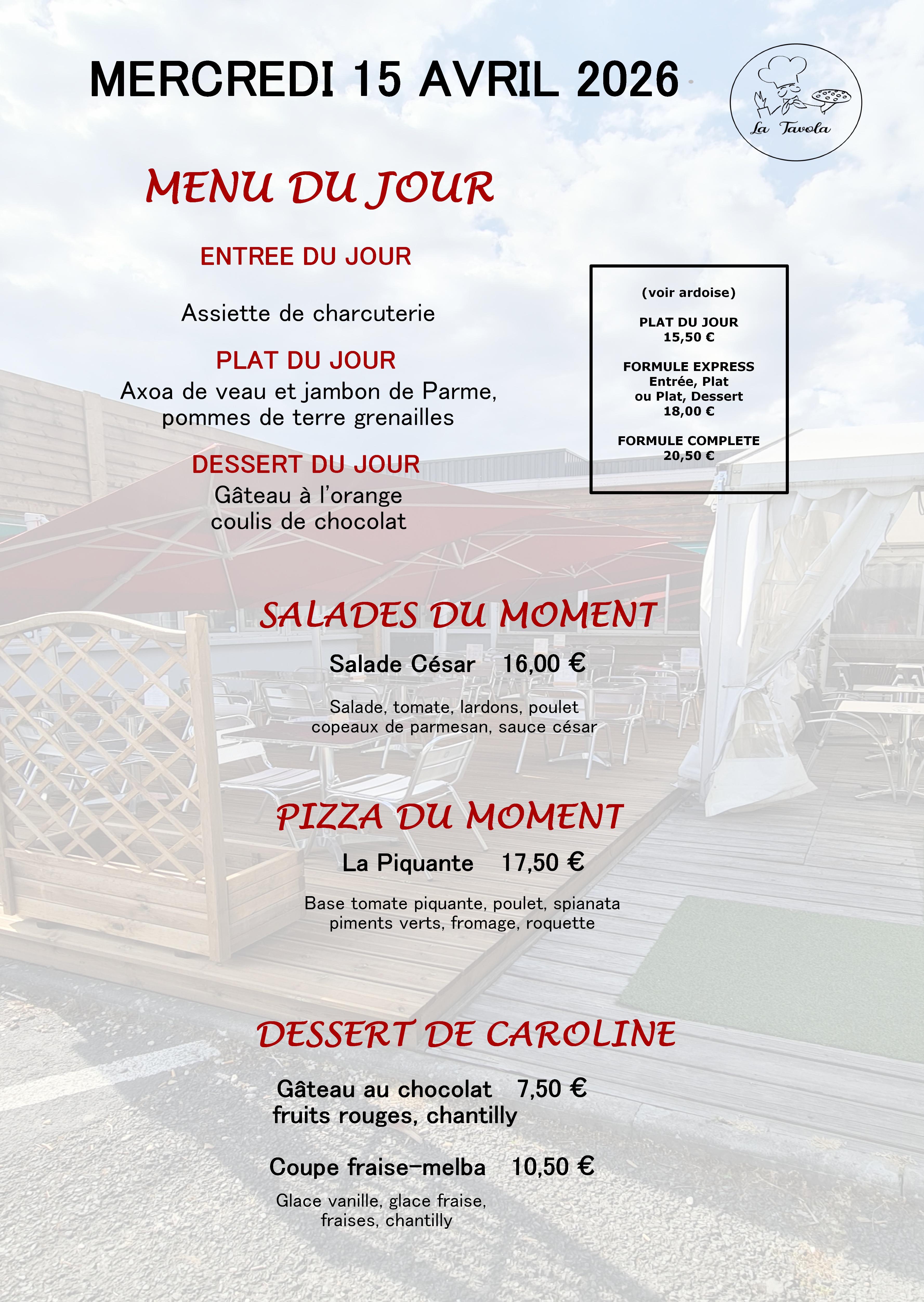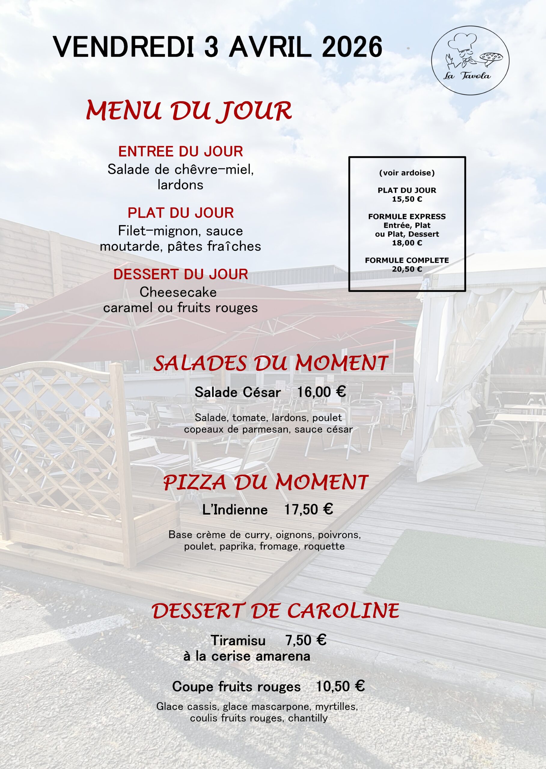 Venez profiter des terrasses du restaurant « la Tavola ».